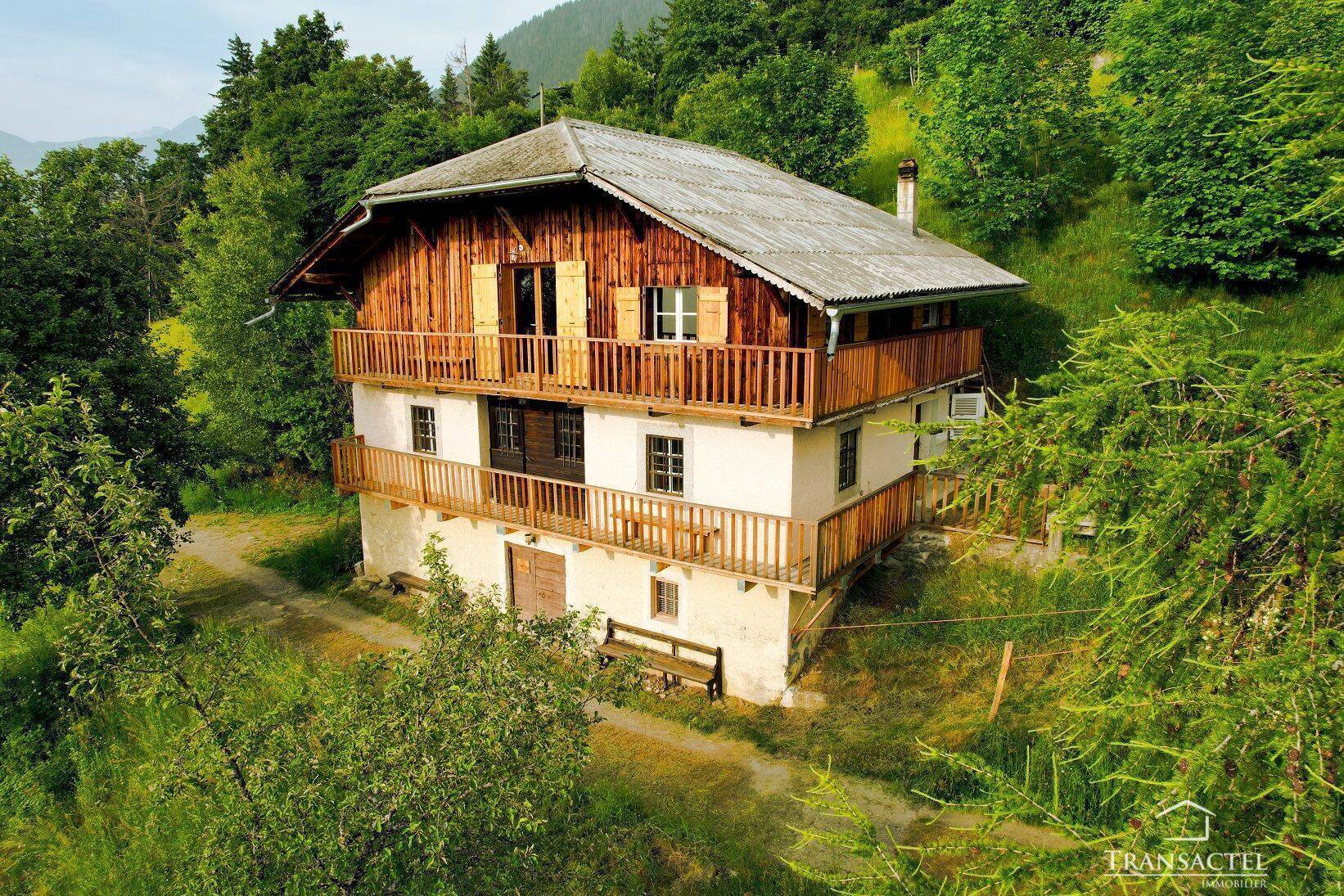 Nichée sur le coteau ensoleillé du Prarion, à Saint-Gervais Mont-Blanc, cette magnifique ferme savoyarde datant de la fin du XIXe siècle offre un cadre de vie exceptionnel au cœur des Alpes. Édifiée sur un terrain de 2 687 m², elle bénéficie d’un environnement champêtre, préservé de toute nouvelle construction, et d’une vue panoramique imprenable sur la vallée, la chaîne des Aravis, les Fiz et le Mont-Joly. Son exposition sud-ouest assure un ensoleillement optimal tout au long de la journée.